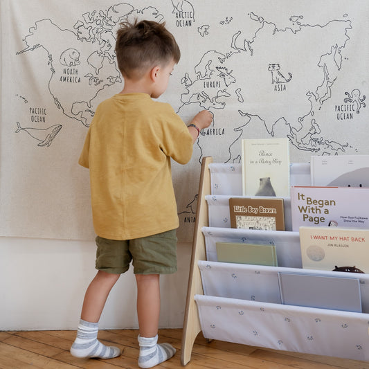 beige recycled fabric book rack