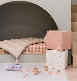 gingham beige recycled fabric folding storage chest