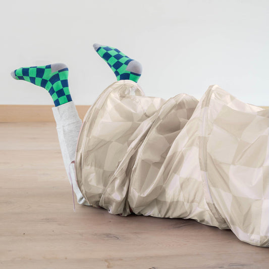 Checkerboard Beige Recycled Fabric Pop-Up Laundry Hamper
