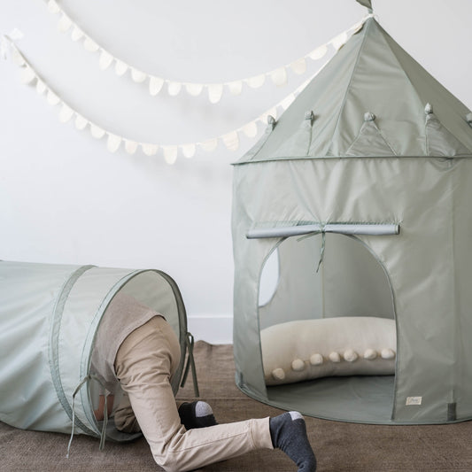 gingham beige recycled fabric 3-in-1 play tent & tunnel set