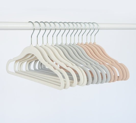 assorted velvet non-slip hangers (30 per set) - cream/grey/hazelnut